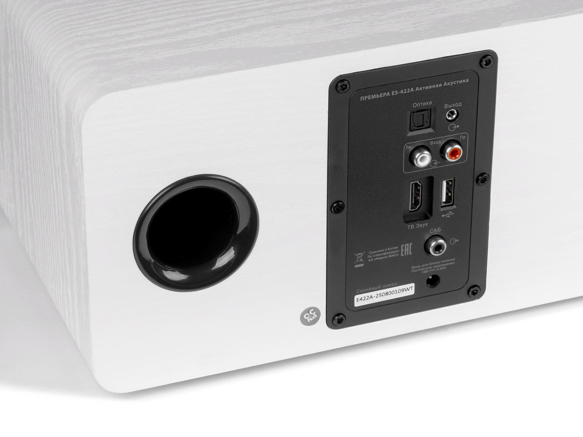 ES-422A имеет встроенный цифровой процессор DSP и оснащена Bluetooth, HDMI ARC, USB-A, оптическим и аналоговым входами, что позволяет использовать ее с различными источниками входного сигнала.